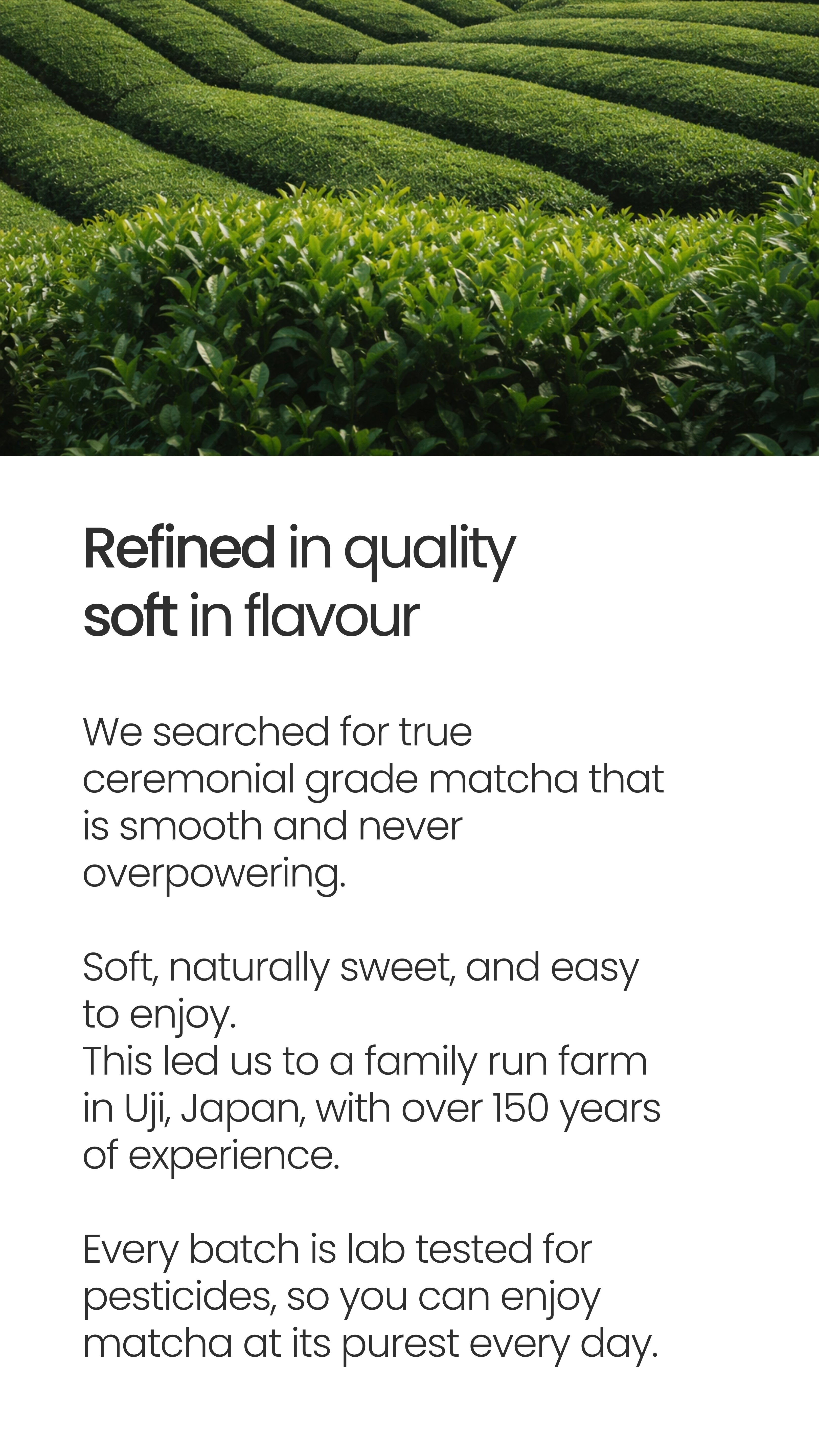 So while the term can be confusing in the West, we use it because it reflects the real standards and traditions followed by the family-run farm in Uji where our matcha is produced.